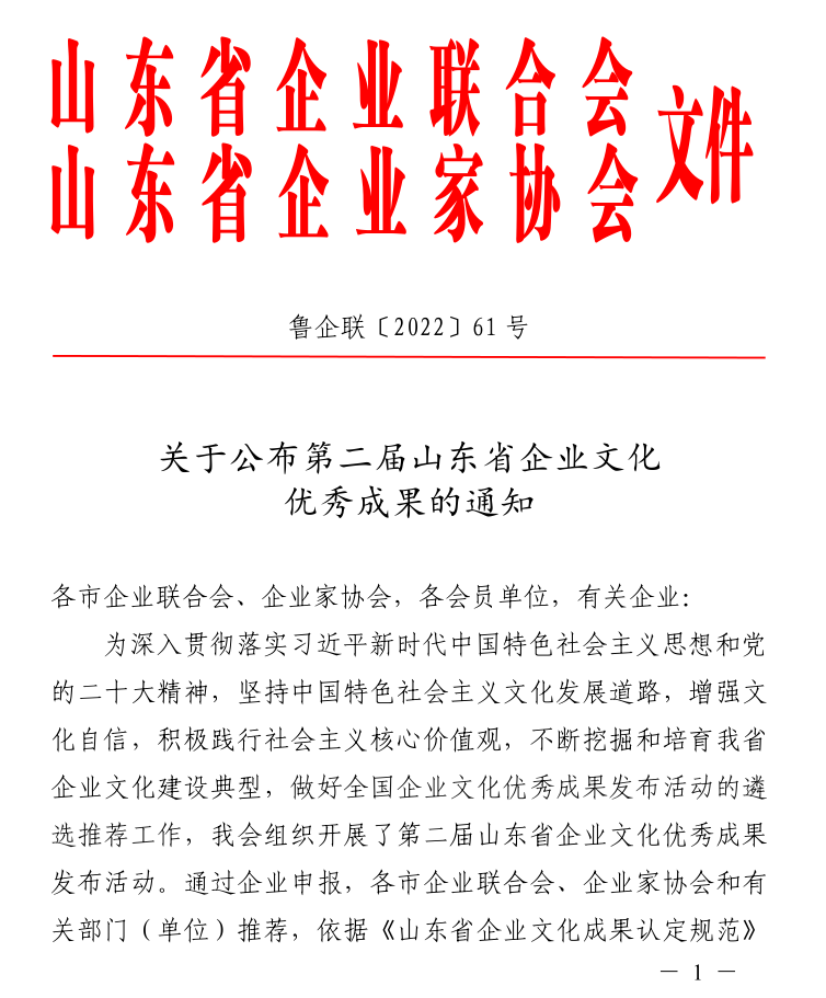 超越科技榮獲山東省企業文化優秀成果一等獎