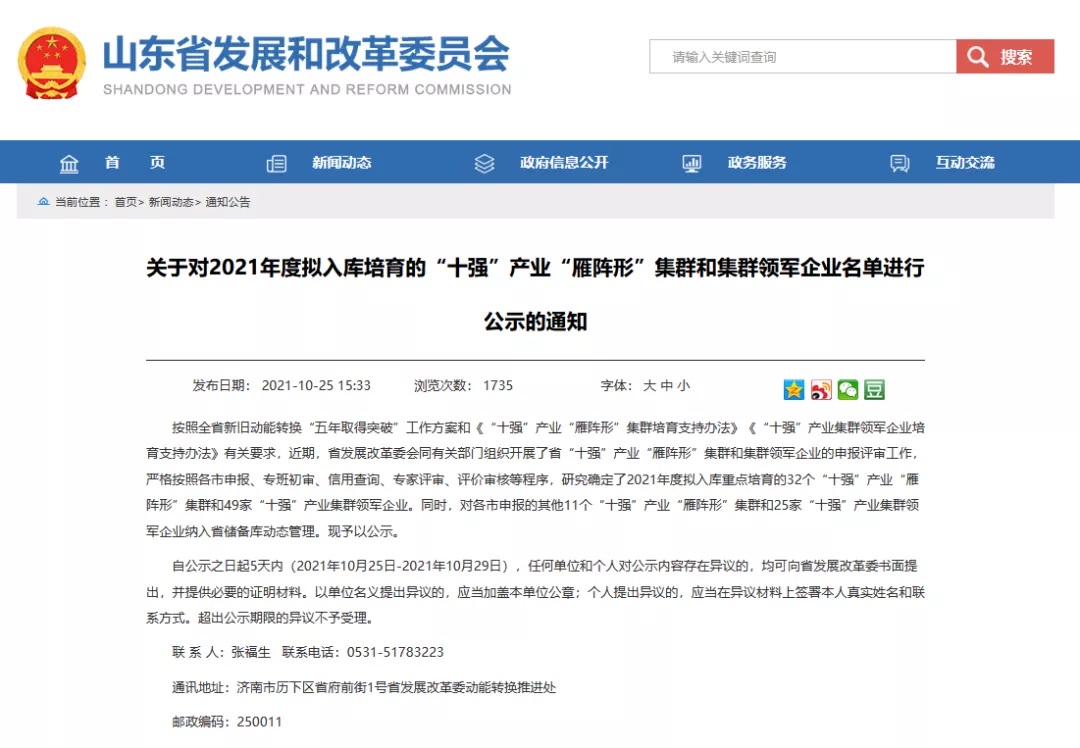 “十強”產業是新舊動能轉換的主戰場,各領軍企業均為推動區域經濟結構優化調整的產業骨干。根據《“十強”產業集群領軍企業培育支持辦法》,山東省每年遴選培育50家左右支撐帶動力強的領軍企業,從資金、項目、技術、人才等要素方面加大扶持力度,強化領軍企業對產業集群的引領帶動作用。