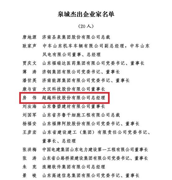 該決定表彰了10位“泉城功勛企業家”、20位“泉城杰出企業家”、70位“泉城優秀企業家”以及55家“泉城優秀企業”。引導全市廣大企業和企業家以受表彰的先進典型為榜樣,錨定“勇當排頭兵、建設強省會”, 聚焦“建設一流企業,打造一流品牌”,對加快現代化強省會建設做出新的更大貢獻。