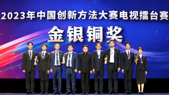 當日電視擂臺賽上,總決賽中誕生的11支參賽隊伍進行巔峰對決,逐鹿中國創新方法領域最高榮譽。經過“開天辟地”“天工開物”“奇思妙想”“一飛沖天”四個環節的比拼,最終超越(浙江)信息產業有限公司參賽代表隊奪得金獎,這是超越科技第二次捧起金獎,2022年大賽金獎是被與他“同出一門”的超越科技股份有限公司摘取。