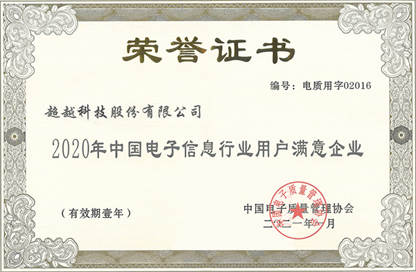 近日,中國電子質量管理協會正式發布《2020年中國電子信息行業用戶滿意工程》結果。超越在全國電子信息行業脫穎而出,榮獲用戶滿意企業!