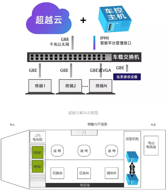 車載設備種類較多,業務復雜,需要統一運維。通過云計算虛擬化技術,將應用和硬件隔離解耦,實現服務器虛擬化+桌面虛擬化,減少服務器和終端數量。硬件形成資源池,資源任意擴容,處理能力按需分配任務動態遷移,服務器互為備份確保數據安全,業務高可靠高可用,超越云管平臺可做到快速部署、業務協同管理、席位浮動,打造一個輕量的、融合的可移動的小型數據中心。