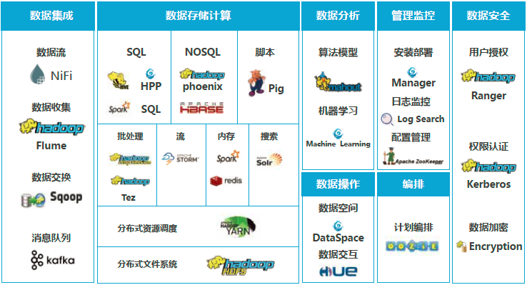 超越云巔CyInsight ,是一套經過調優和功能增強的Hadoop與Spark企業發行版,包含Hadoop生態中的20+主要組件,幫助客戶輕松應對海量數據的采集、存儲、計算、分析挖掘和數據安全等應用場景